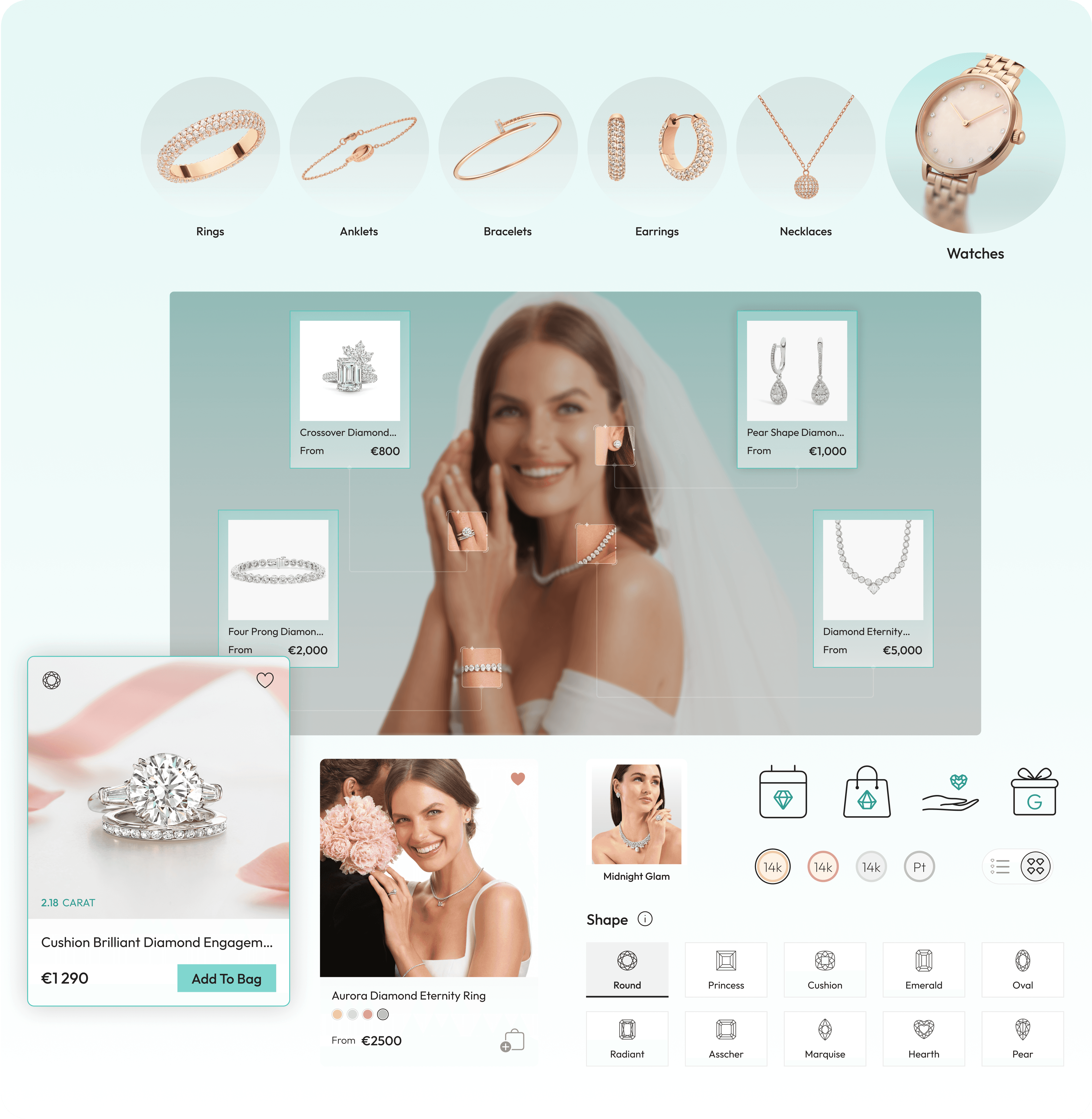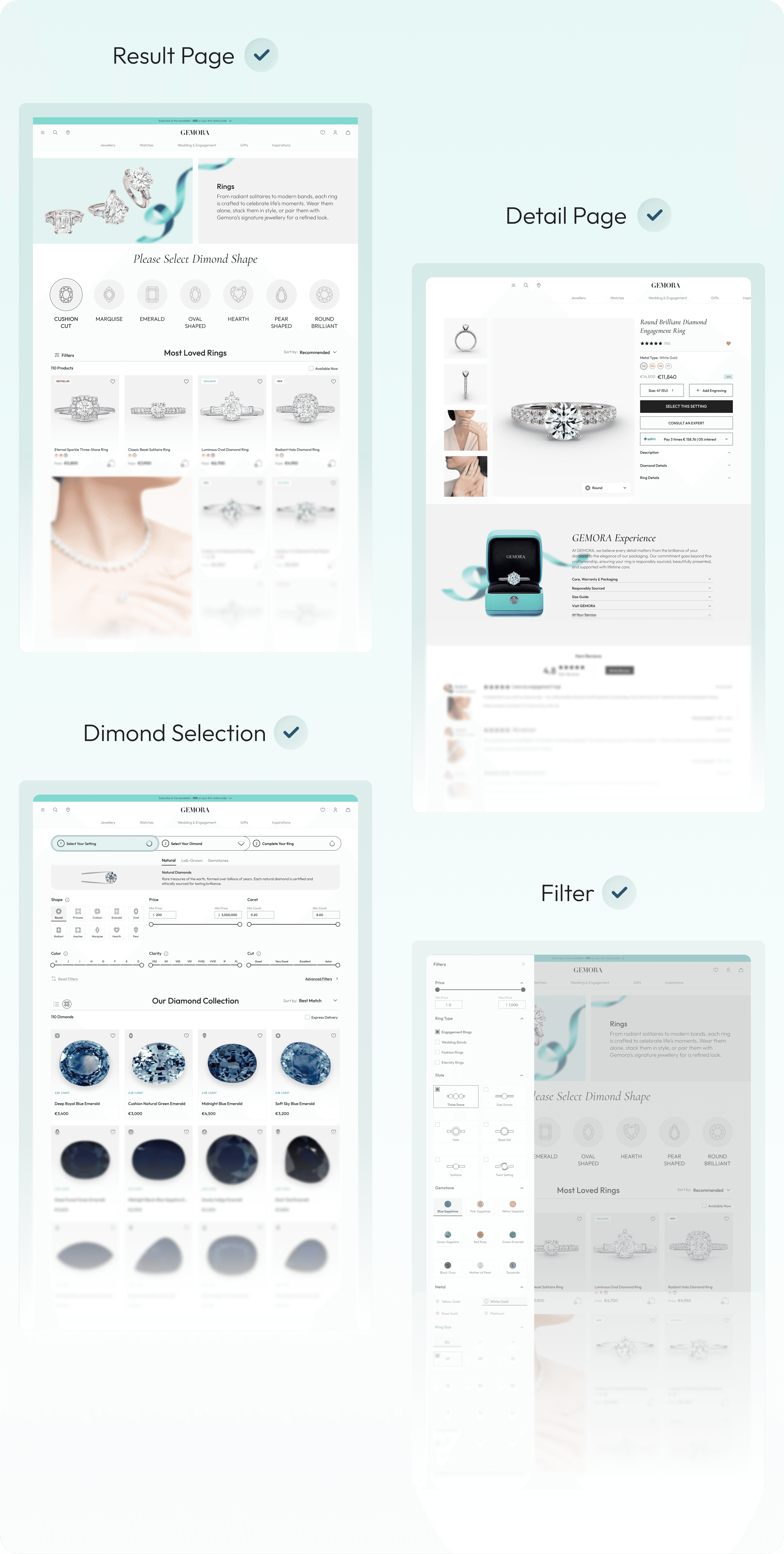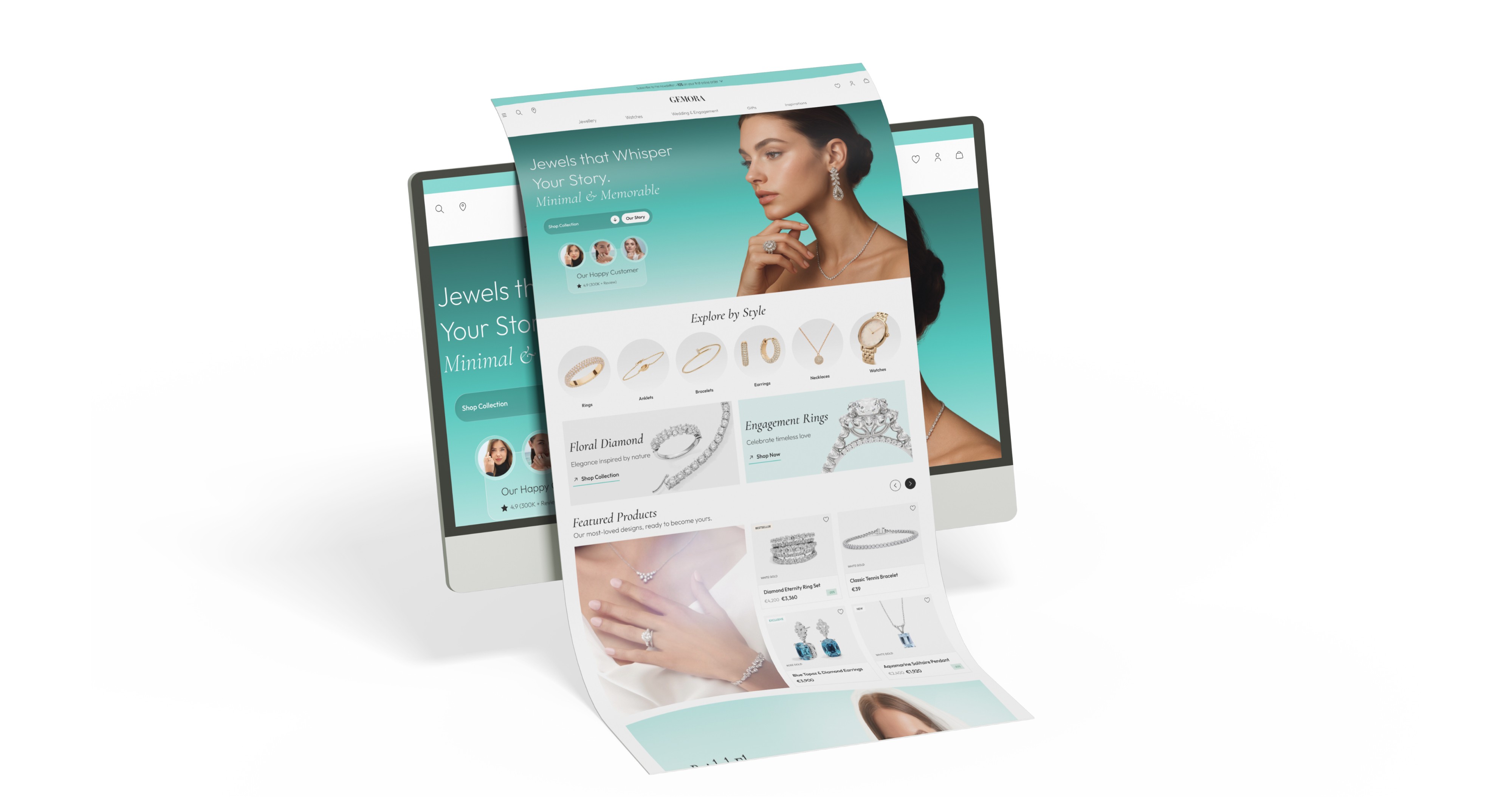 Gemora is a jewelry brand concept built around balance, emotion, and calm sophistication. Every element from product cards and collections to packaging and homepage flow reflects harmony between luxury and minimalism. The visuals follow a soft, editorial aesthetic inspired by watercolor textures, clean grids, and natural light.